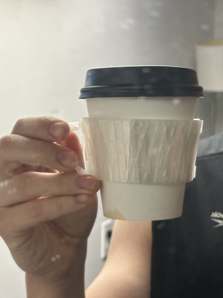 The Flexible Cup Holder is lightweight, reusable, and comfortable to hold, effectively insulating the user’s hand from hot drinks. Its minimal matte finish gives it a modern aesthetic, making it not only practical but also visually appealing. The overall result demonstrates how 3D design and modern prototyping can turn a simple idea into a functional everyday product.