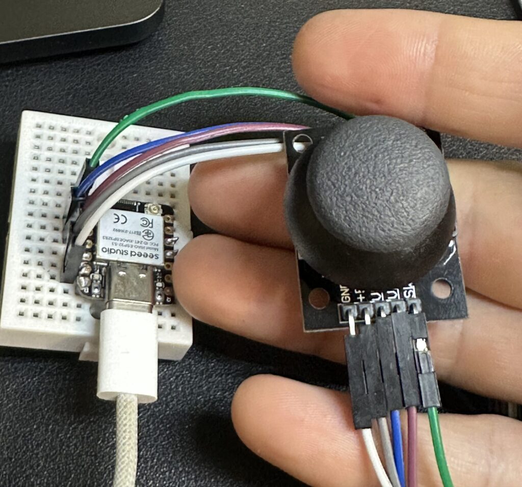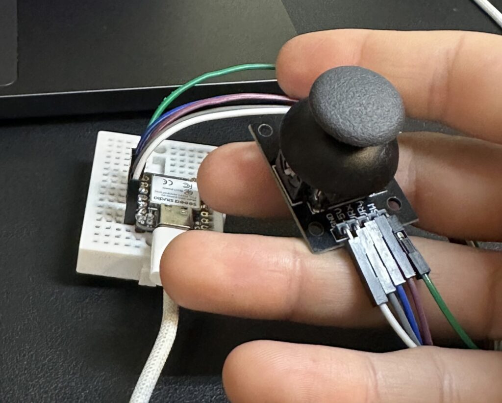 The device consists of esp32s3 and Joystick ky-023 . So the microcontroller take data from joystick sensor for Axis x,y.Also the esp32s3 give us the benefits to connect automatic when find device that has already was paired
